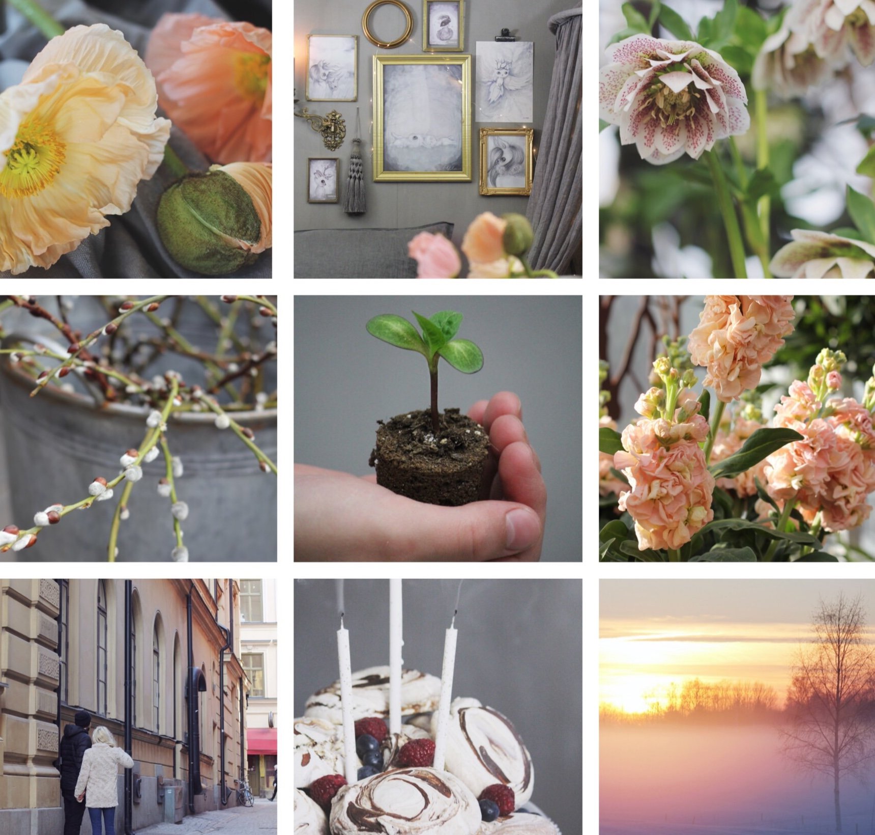 Min födelsedag firas i Stockholm i Gamla stan och på Ulriksdals trädgård (favoritplats). Det jag sått börjar komma upp och det är lycka. Jag målar en karta över trädgården i akvarell och planerar för en härlig trädgårdssommar. I snön i rabatten tittar julrosor upp och inomhus binds buketter av vallmo, lövkojor och vide. I uthuset pysslas det med min fotostudio och vi går på Melodifestivalen i huvudstaden.