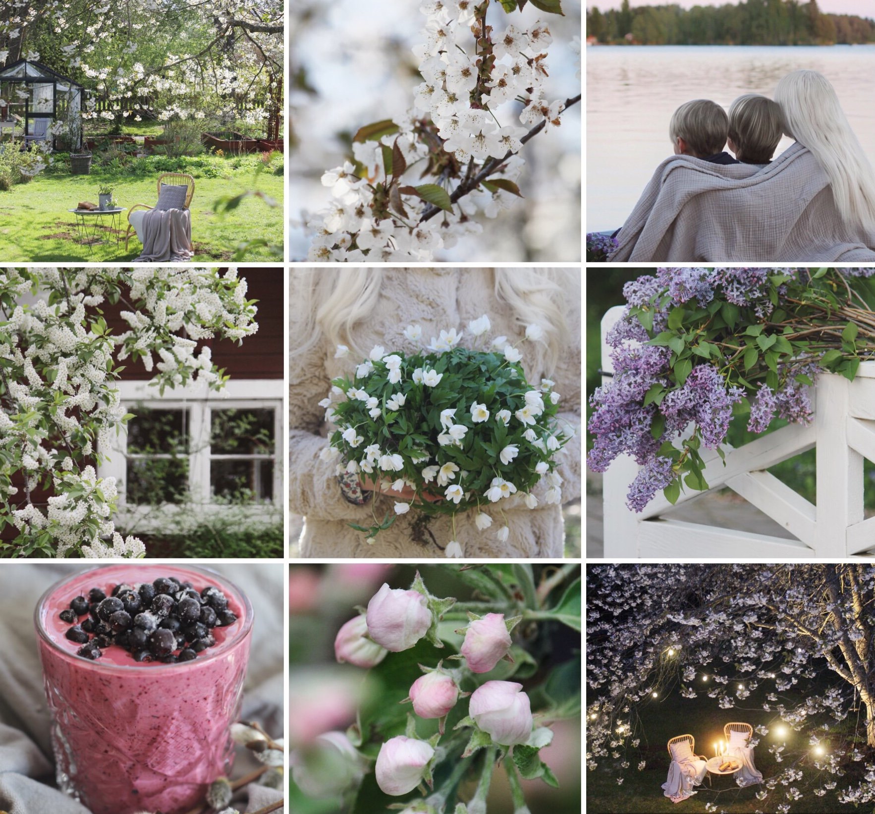 Mitt favoritkollage tror jag. Det kan vara min bästa månad kanske. Syrener, bigarråblommor, hägg, vitsippor. Finns det något ljuvligare. Den där första sommarvärmen när vi sitter tillsammans på bryggan vid sjön och hör göken långt där borta. Jag jobbar med en talangjakt på teatern men försöker samtidigt balansera tiden så att vi hinner fika under äppelblommorna och njuta försommar! Vi påbörjar rusten av köket.