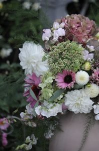 Jag är så glad för det här då det är så roligt att få vara kreativ och skapa bilder under en hel dag på det här viset. Jag älskar det och har fått så många nya idéer efter dagen. Ser fram emot fotograferingen inomhus och att få se alla bilder och hur reportaget blir. Buketten som ni ser på bilden är plockad i vår trädgård under gårdagen. Det är olika sorters hortensia, dahlia, solhatt, rosenvial, sparris, höstanemon, rosenflockel och kärleksört. En riktig Septemberbukett.