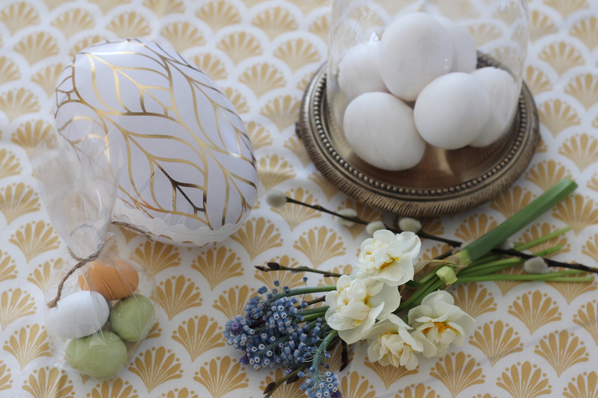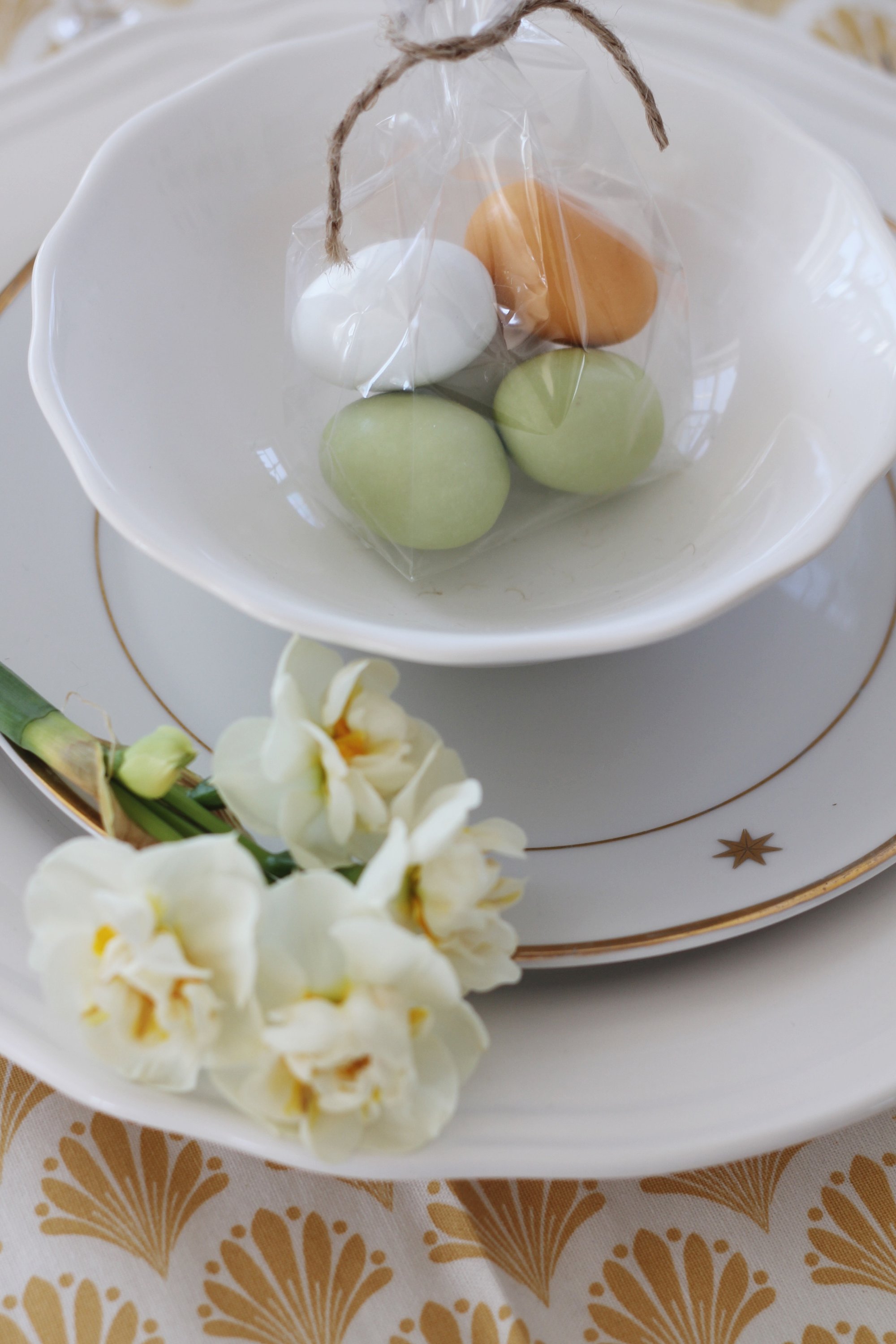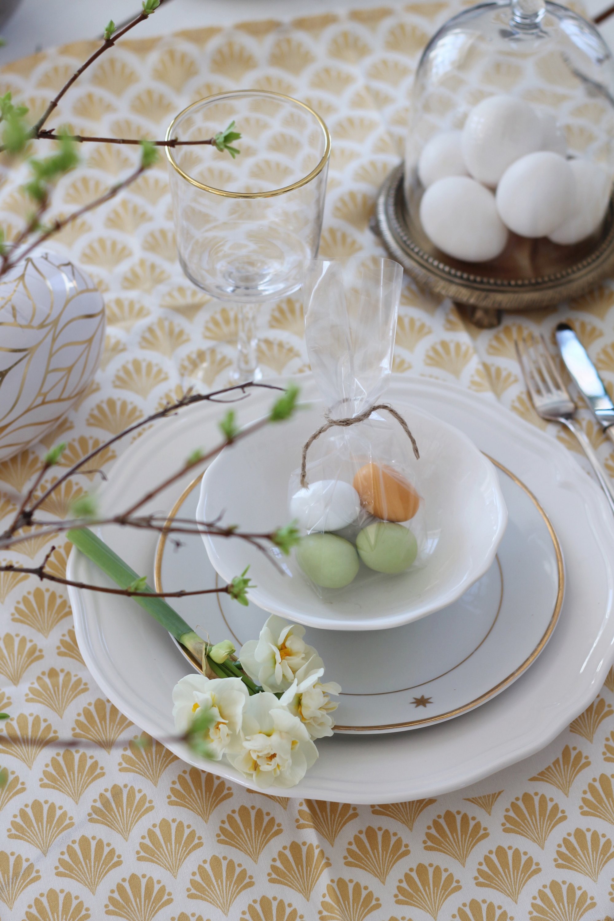 Älskar att göra olika sorters dukningar. Här är förra årets påskdukning med tarzetter, ägg i glaskupa och en liten överraskning till varje gäst i form av små marsipanägg.