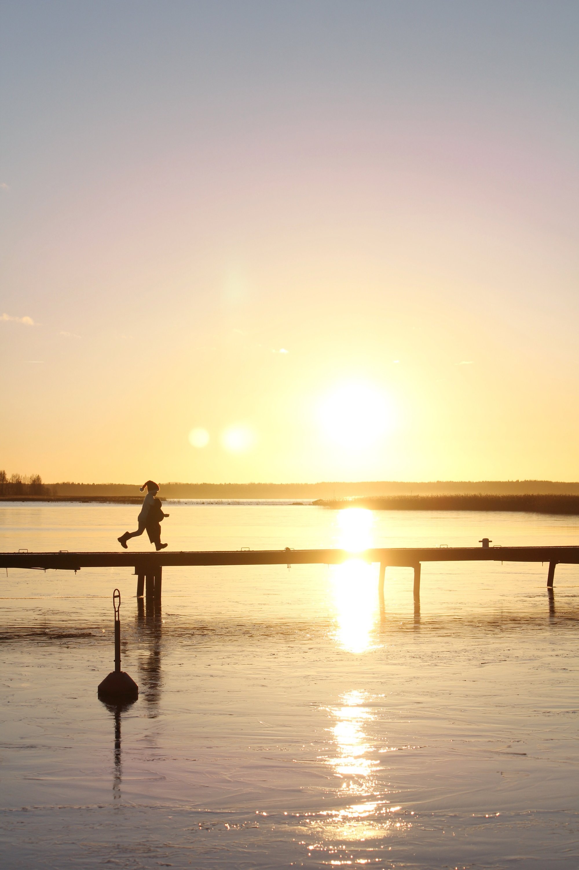 Vi får väl se vem som blir tomte i år. Tror att Noah funderar på en tomtekarriär eventuellt ;) Love vill helst vara Nisse. Här vandrar han på bryggan vid vår sjö som nu är frusen och speglar solnedgångarna på ett magiskt sätt.