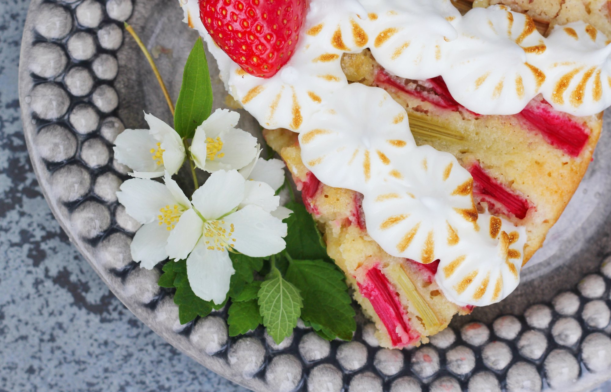 Midsommarinspiration - Rabarberkaka med maräng och mandel