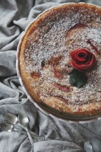 Kakan är alldeles ljuvlig när den är varm men går ju precis lika bra att äta dagen efter med fluffig vaniljsås till. Rosen har jag gjort av äppelskal som jag dragit bort från äpplet med hjälp av en potatisskalare. det blev som ett långt band som jag sedan kunde rulla ihop till en ros. Enkelt tips från mig!