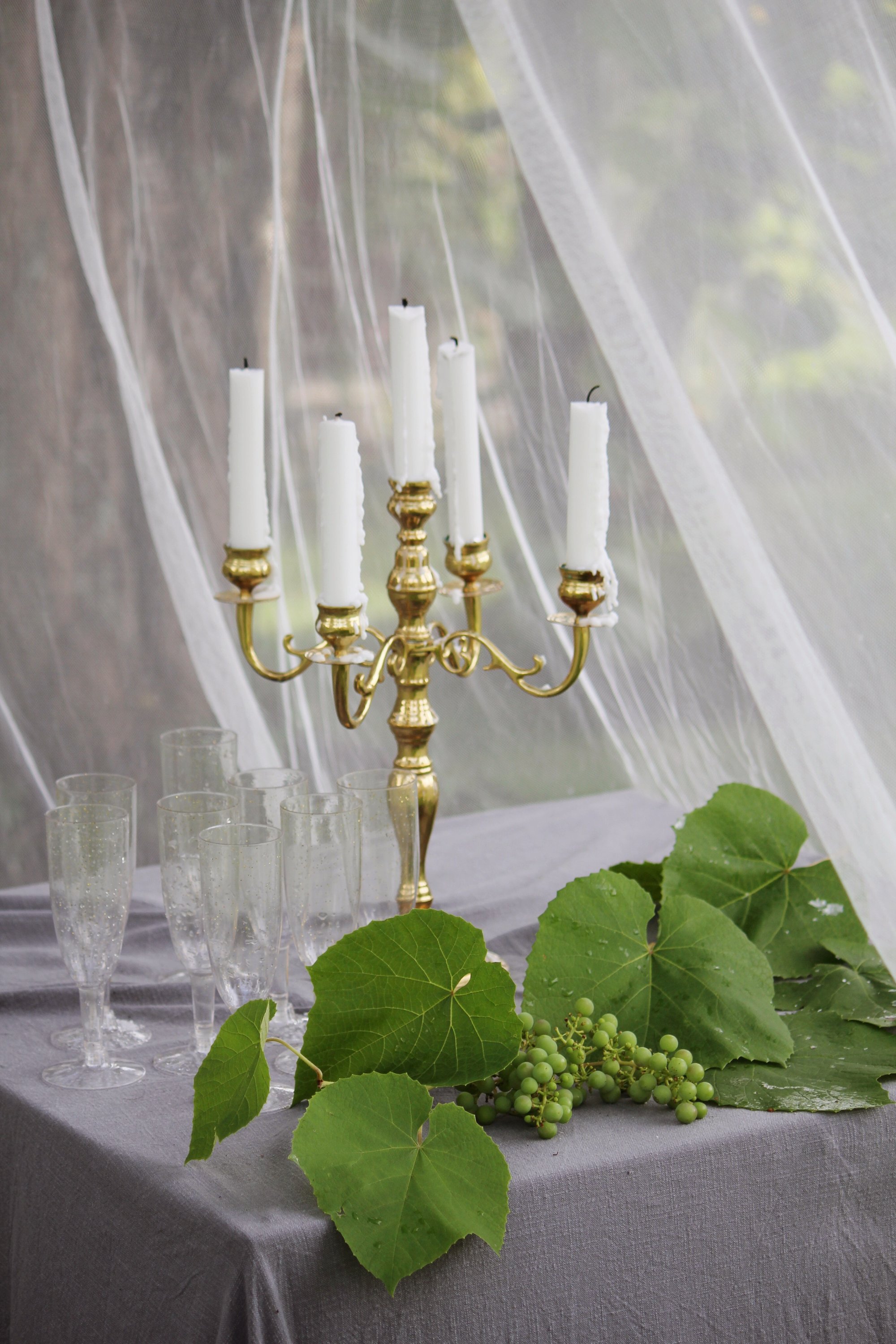 En kandelaber och några vinrankor med druvor fick bli dekorationer.
