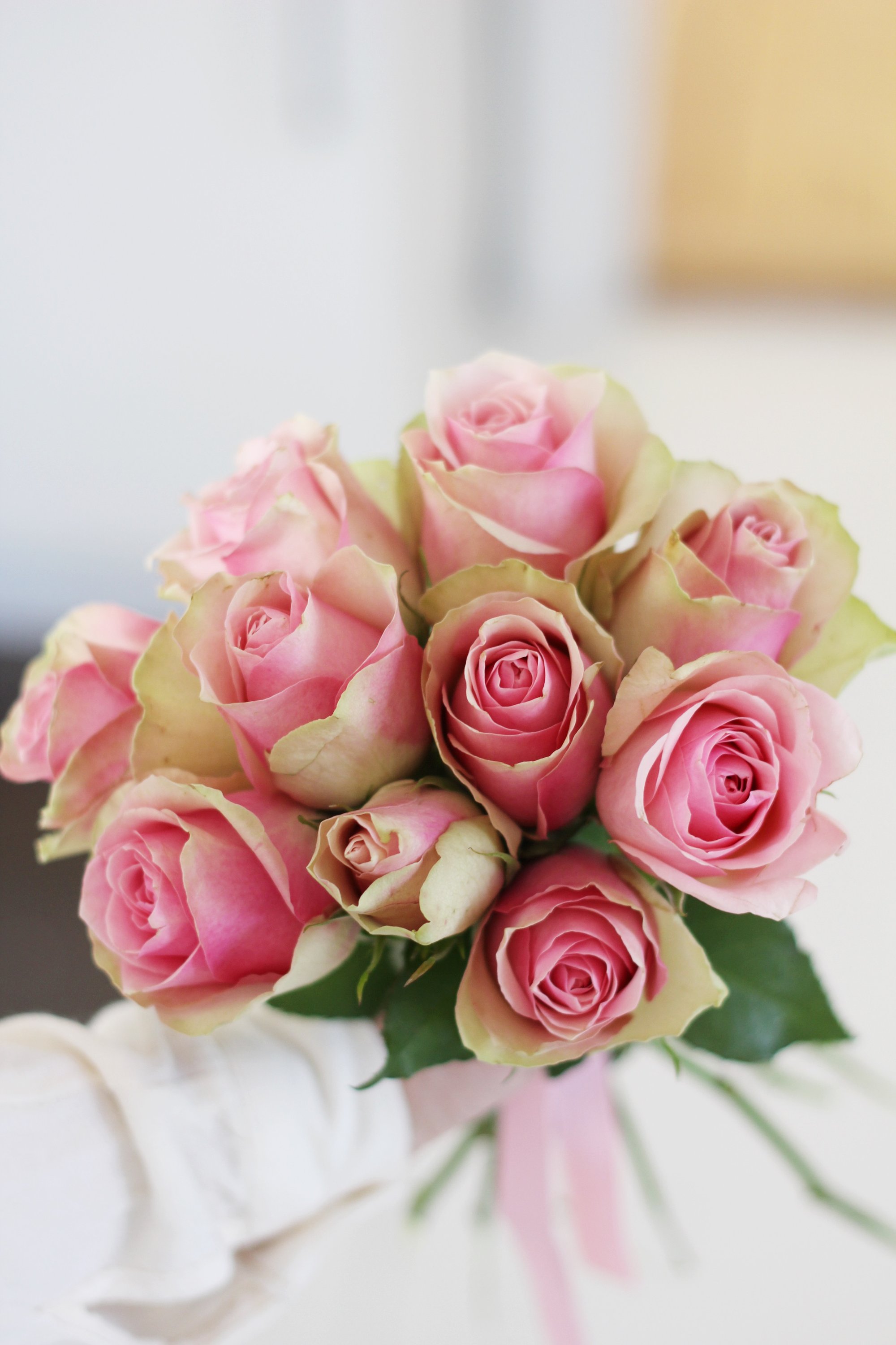 Här kommer lite tips till hemmapyssel för dig som gillar blommor lika mycket som mig. Det behöver inte alls vara svårt, krångligt eller ta lång tid att skapa en egen bukett. Hittade jättefina rosor i bunt på Ica faktiskt i så där fin puderrosa färg ni vet. Jag tog av nästan alla blad och började binda buketten.