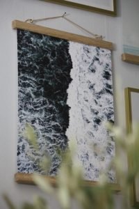 Hos dearsam finns även ramar och jättefina posterhängare att hänga upp tavlorna med. Jag tycker om att blanda lite för en personlig stil. Jag har valt olika ramar i guld, posterhängare och en klämma till en av tavlorna. Den här posterhängaren i ek är jättefin och så enkel att montera då det är magneter.