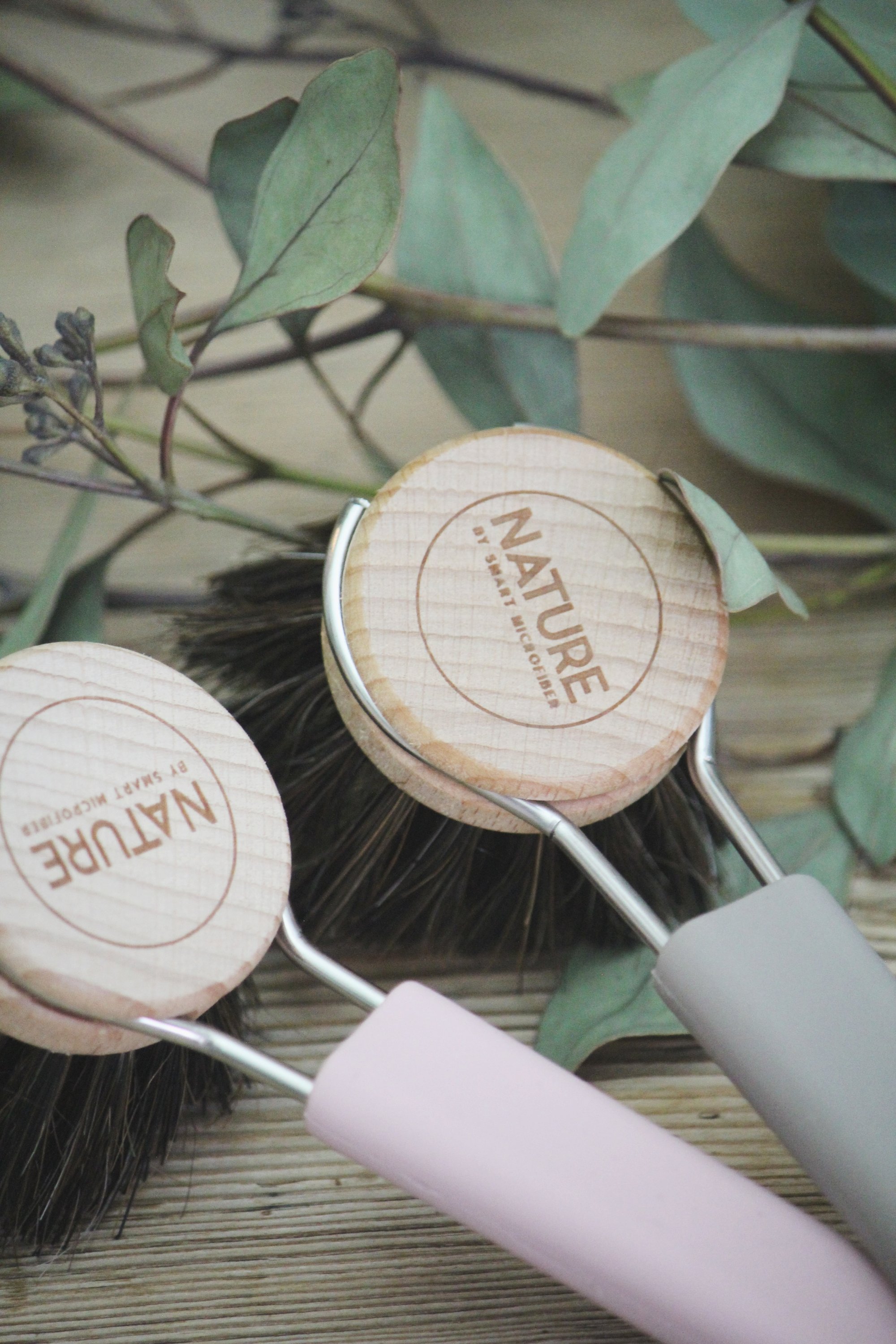 Diskborstarna är FSC-märkta i bokträ, silikon och med naturlig borst. Själva borsten går sedan att byta ut så att man inte behöver slänga själva skaftet.