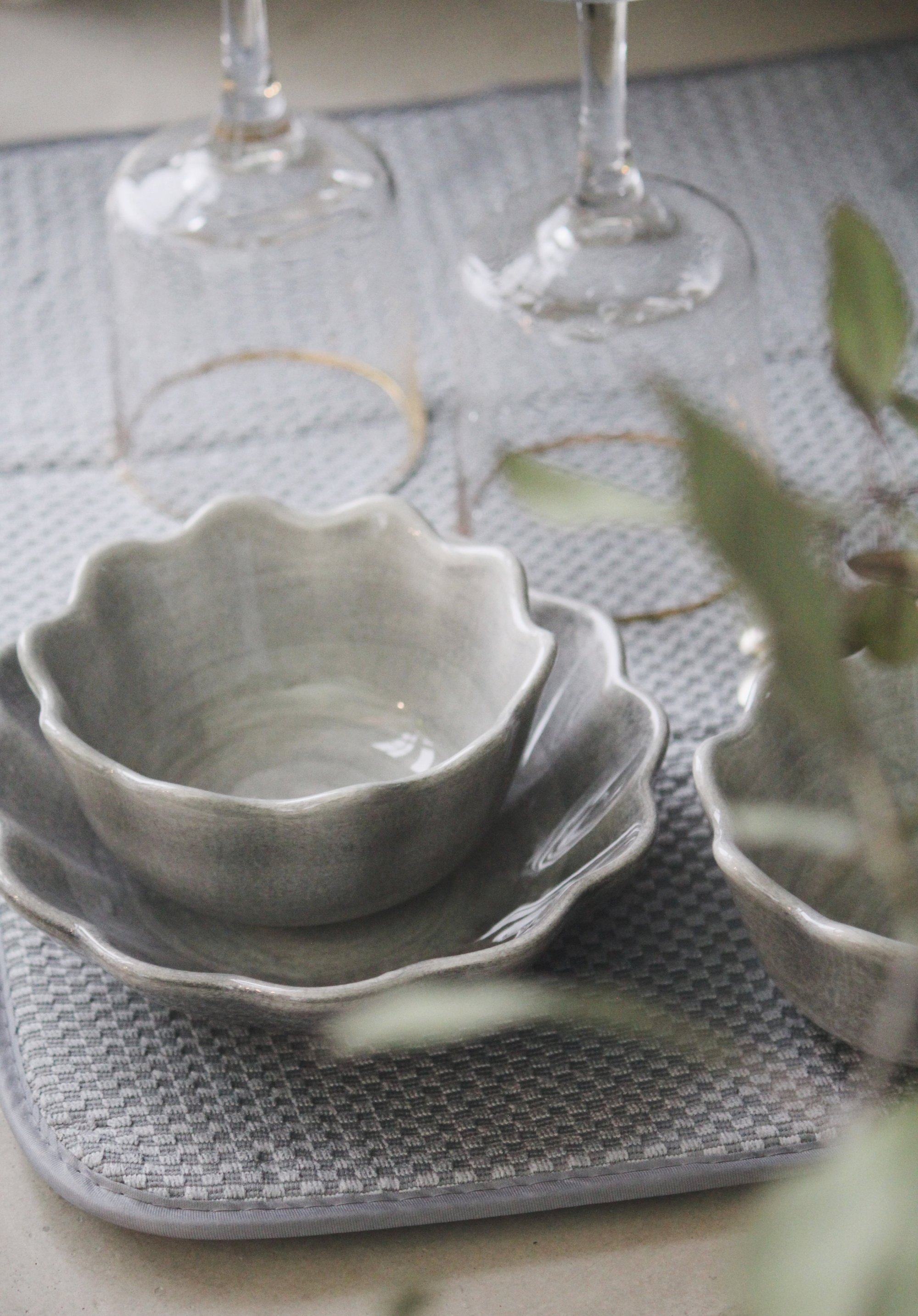 I vårt nya kök har vi en diskho mitt på bänken för att få den centrerad med fönstret och för att kunna se ut mot trädgården när man diskar. Vi har diskmaskin men jag har en del finporslin som jag gärna vill diska för hand. Tycker faktiskt om att handdiska. Problemet har varit att vi inte har något diskställ och det passar inte riktigt tycker jag när vi har diskhon i mitten av arbetsbänken. Har sett att det finns diskunderlägg och hittade ett jättebra hos detta företag. Ett grått som man enkelt kan vika ihop när man använt det färdigt. Så smart!