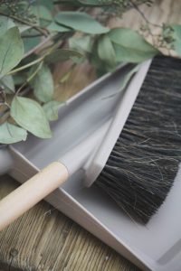 Fin sopborste i trä och en jättefin grå färg.