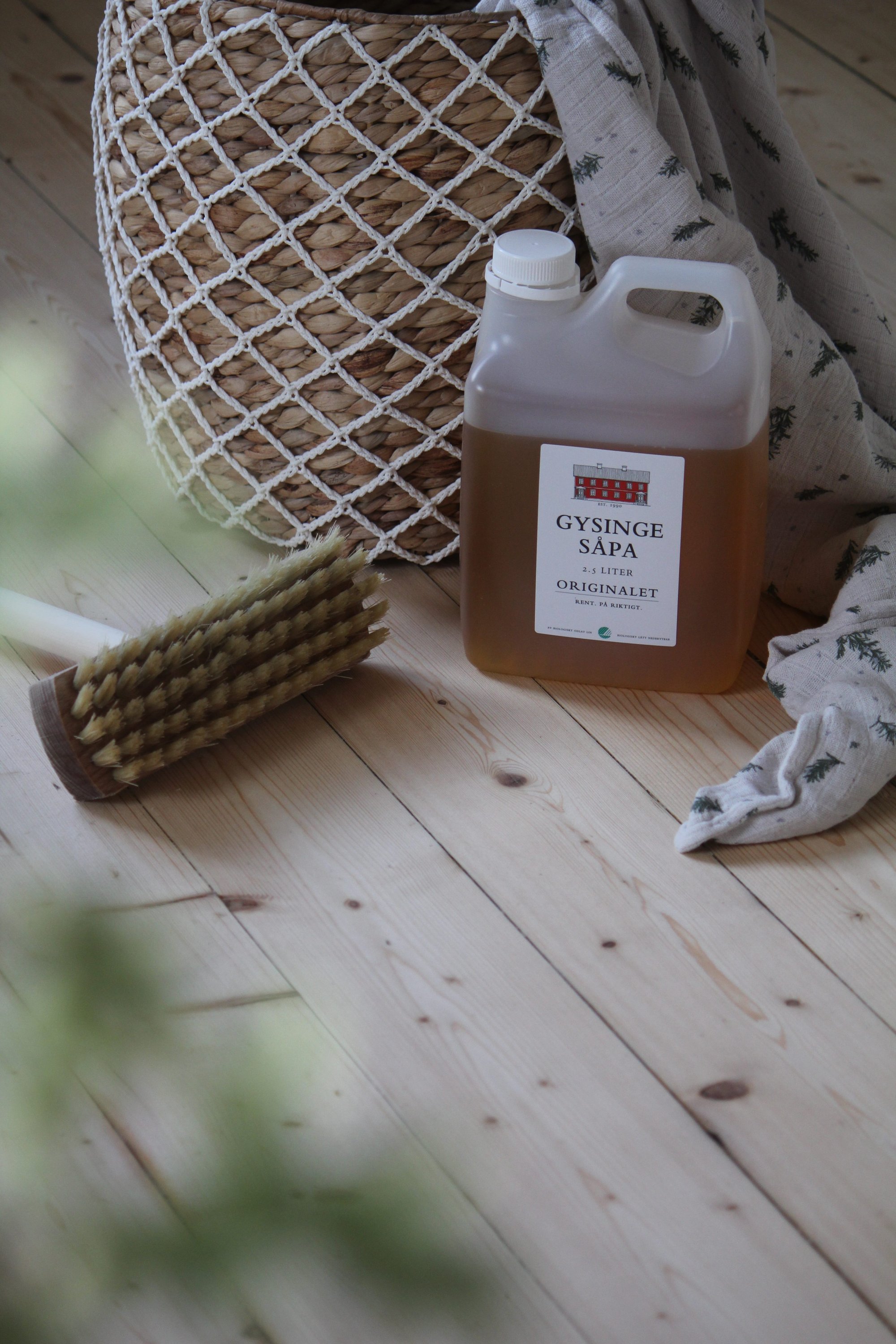 Sedan var golven redo för sin behandling. Att såpskura golv är ett gammalt sätt att ta hand om gamla trägolv. De blir mjuka, varma att gå på och blir ljusare för varje såpskurning. Det enda man behöver överväga är att mattor kan göra att golvet under mattan till slut får en annan nyans när solen ligger på. Älskar känslan av såpskurade golv. Vi använder Linoljesåpa från Gysinge Byggnadsvård. Blandar enligt recept på flaskan. Här kommer de olika stegen om du vill göra skurgolv.