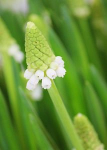 Redan efter nyår brukar jag ha lökar inomhus. Tycker det är så härligt att följa de små lökarna med sina gröna små strån tills de är blommande vårblommor. Lökar brukar jag köpa billigt på Ikea. Dessa små vita pärlhyacinter står i en kruka från Sturehofs Krukmakeri. De är alltid fina tycker jag och finns i enbart lera samt glaserade i olika färger. Min är vit och har hängt med i flera år nu. Efter blomning brukar jag spara mina små lökar och peta ner dem i rabatten sedan när våren är här på riktigt.
