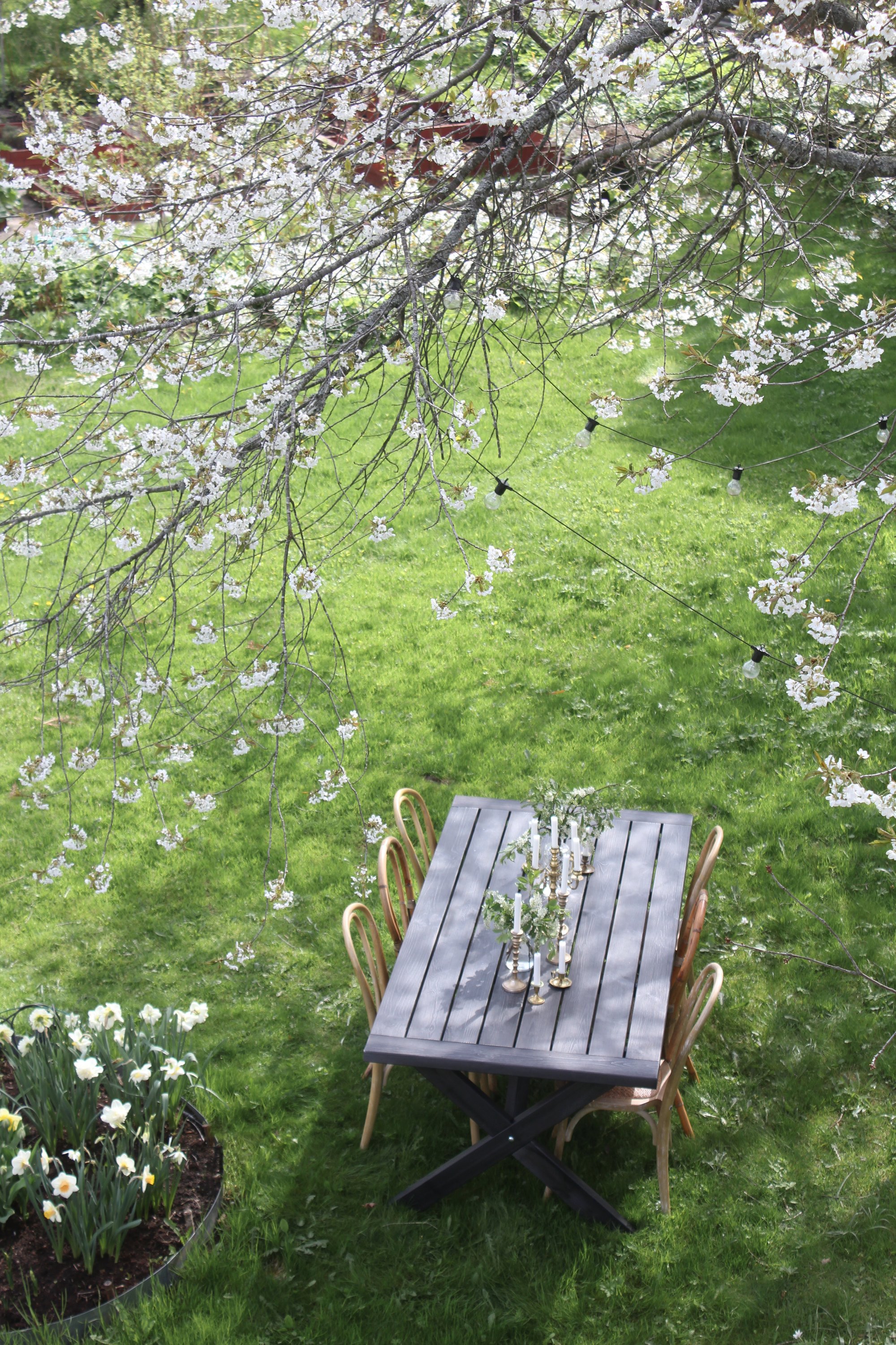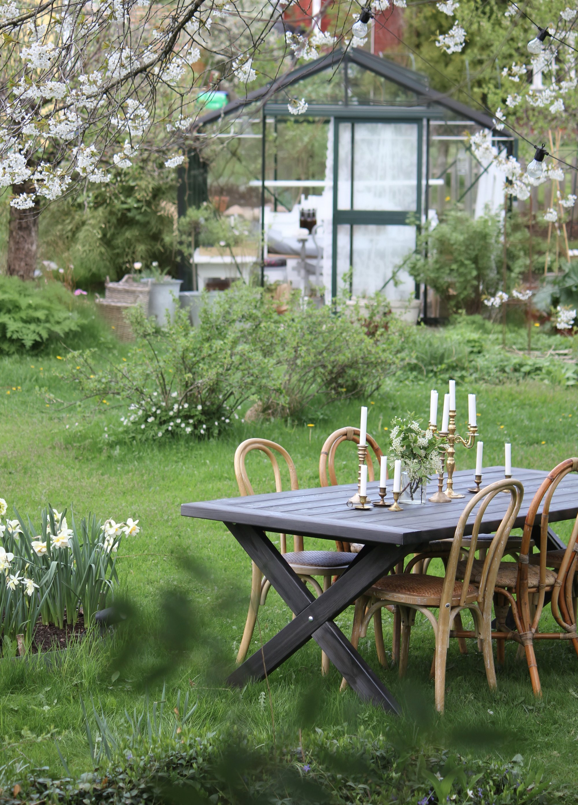 Här kommer det garanterat bjudas till trädgårdsfika i sommar. Det känns som att uteplatsen blir central i dessa pandemitider när man helst ska träffas utomhus.