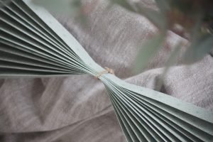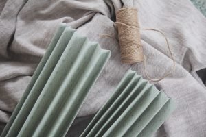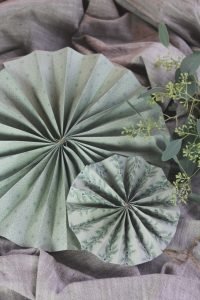 Knyt ett snöre i mitten av den veckade rektangeln. Jag använde ett jutesnöre. Har du två vikta kvadrater lägger du inhop dem till ett papper och knyter i mitten.