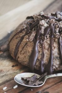 8.Innan servering tinas den svalt och dekoreras med hackad choklad, smält choklad i mönster och syrliga bär t.ex. jordgubbar.