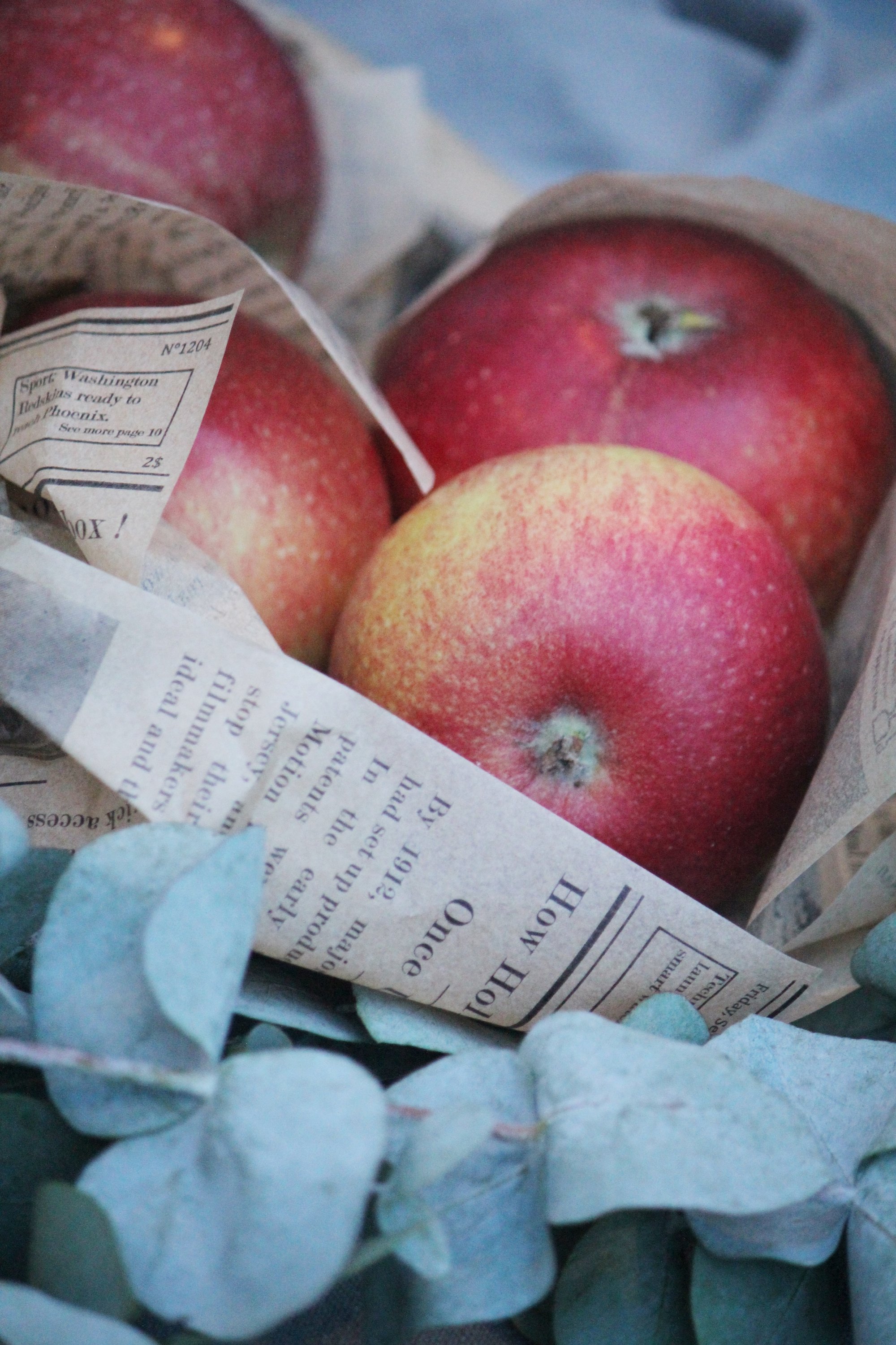 Vi har ett Ingrid Marie träd i trädgården och i höstas plockade vi alla äpplen och virade in dem ett och ett i tidningspapper. De har sedan förvarats i en sockerlåda i uthuset där det är ca +2 grader. När det närmar sig jul är det dags att plocka fram dem.