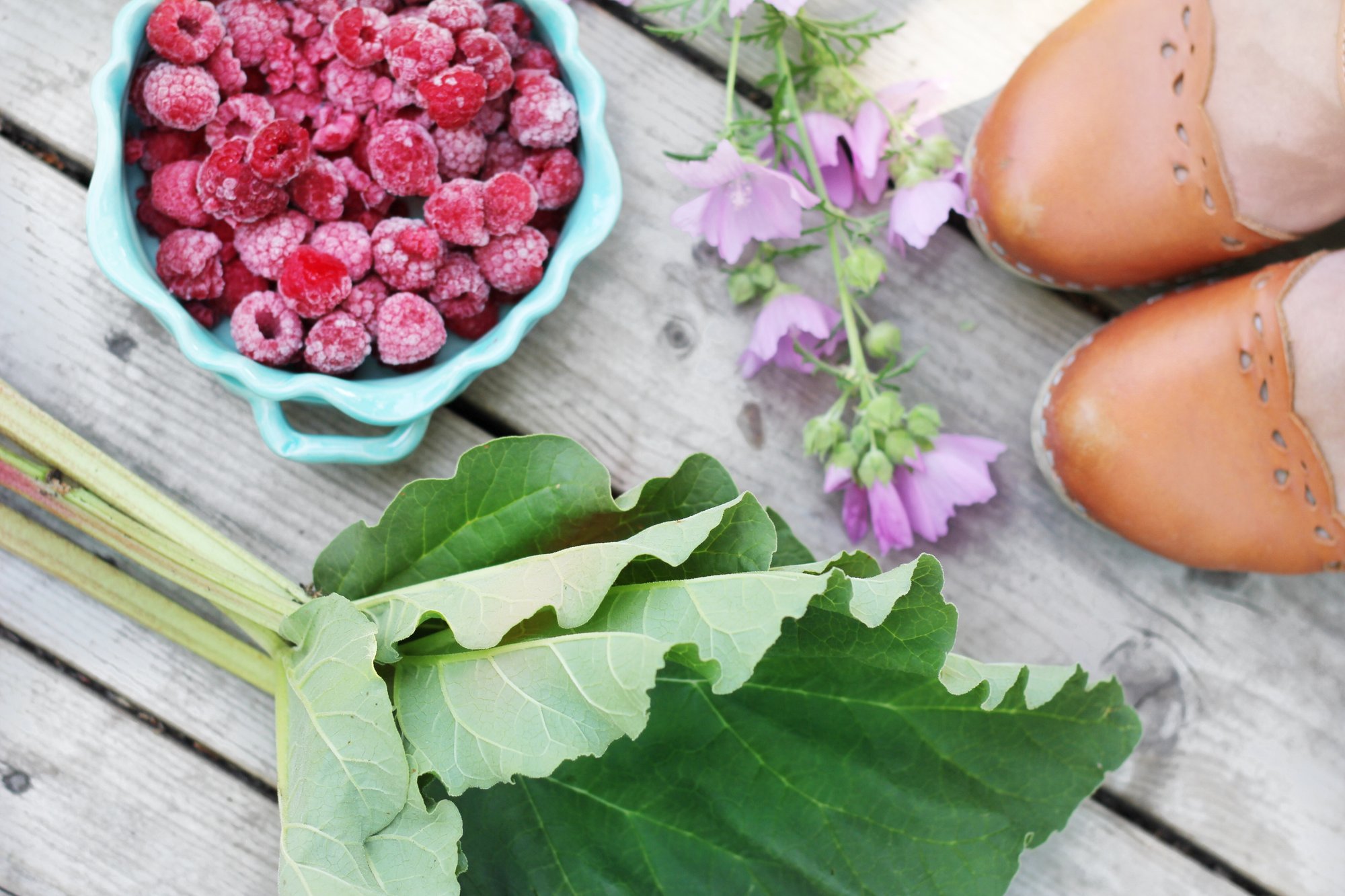 Smula detta över rabarber och hallon.