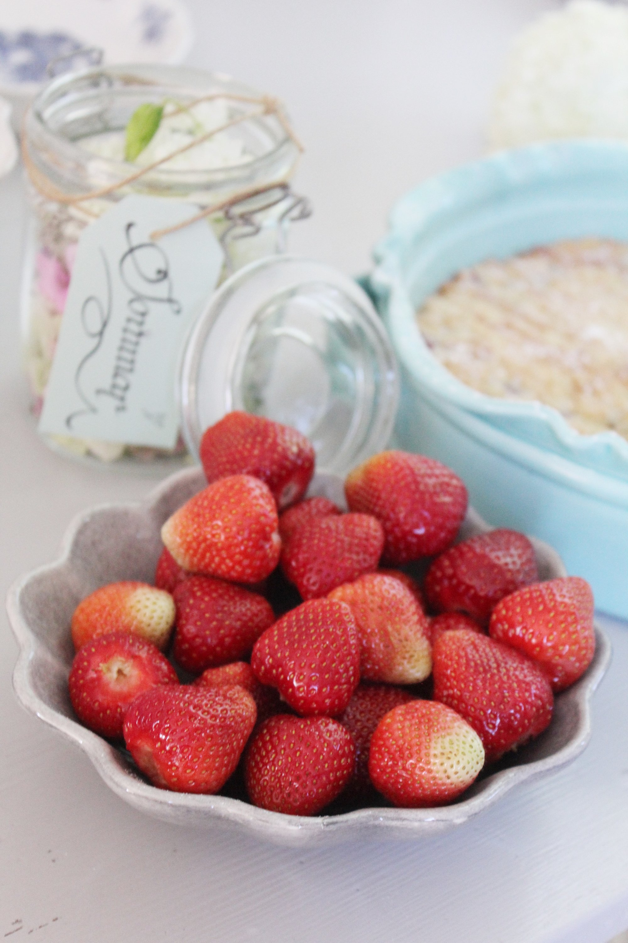 Serveras med kall vaniljvisp eller vaniljglass. Vi hade även några syrliga jordgubbar vid sidan av.