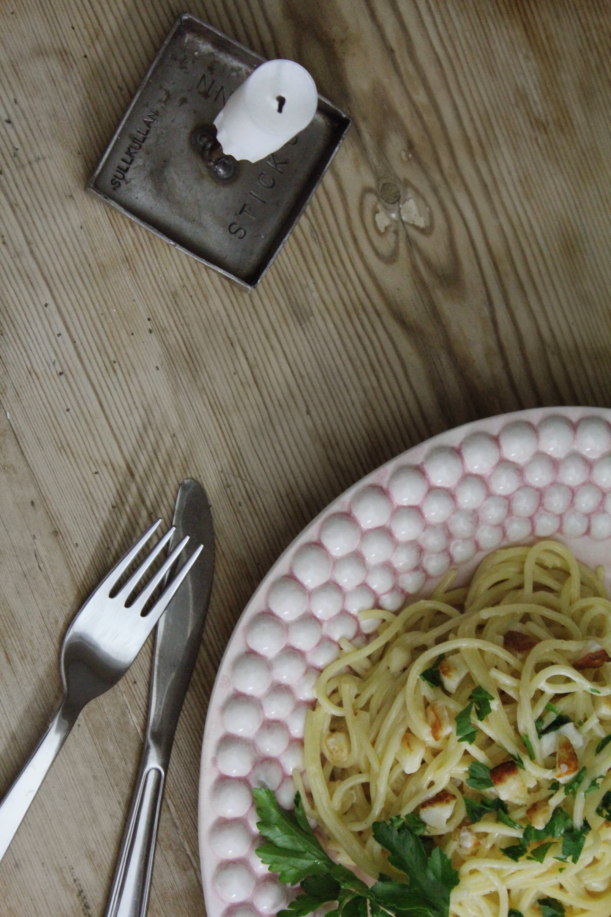 Då var vi mitt i veckan igen. Skola för barnen samt jobb för oss rullar på som vanligt. Vet ni jag tänkte att ni skulle få ett jättegott vegetariskt vardagsrecept av mig nämligen min Halloumi Carbonara! Går snabbt och enkelt att tillaga en dag mitt i veckan.