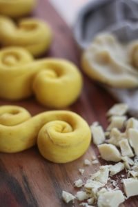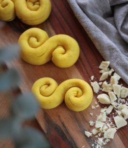 Lussekatter med mandelmassa och vit choklad