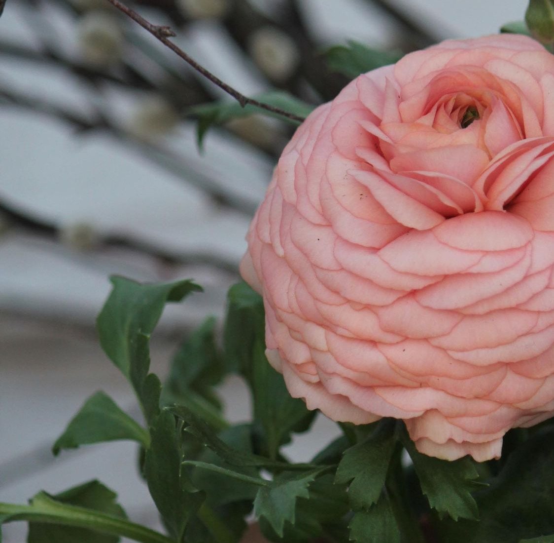 Måste visa er våra aprikosa ranunkler som vi har i krukor vid ytterdörren. En ovanlig sort som jag fick tag på hos torghandlaren för ett tag sedan. Ranunkel trivs bra när det är lite svalare ute så den fick planteras ihop med penséer. Snart är det varmare ute och det är dags för sommarens planteringar. Längtar!