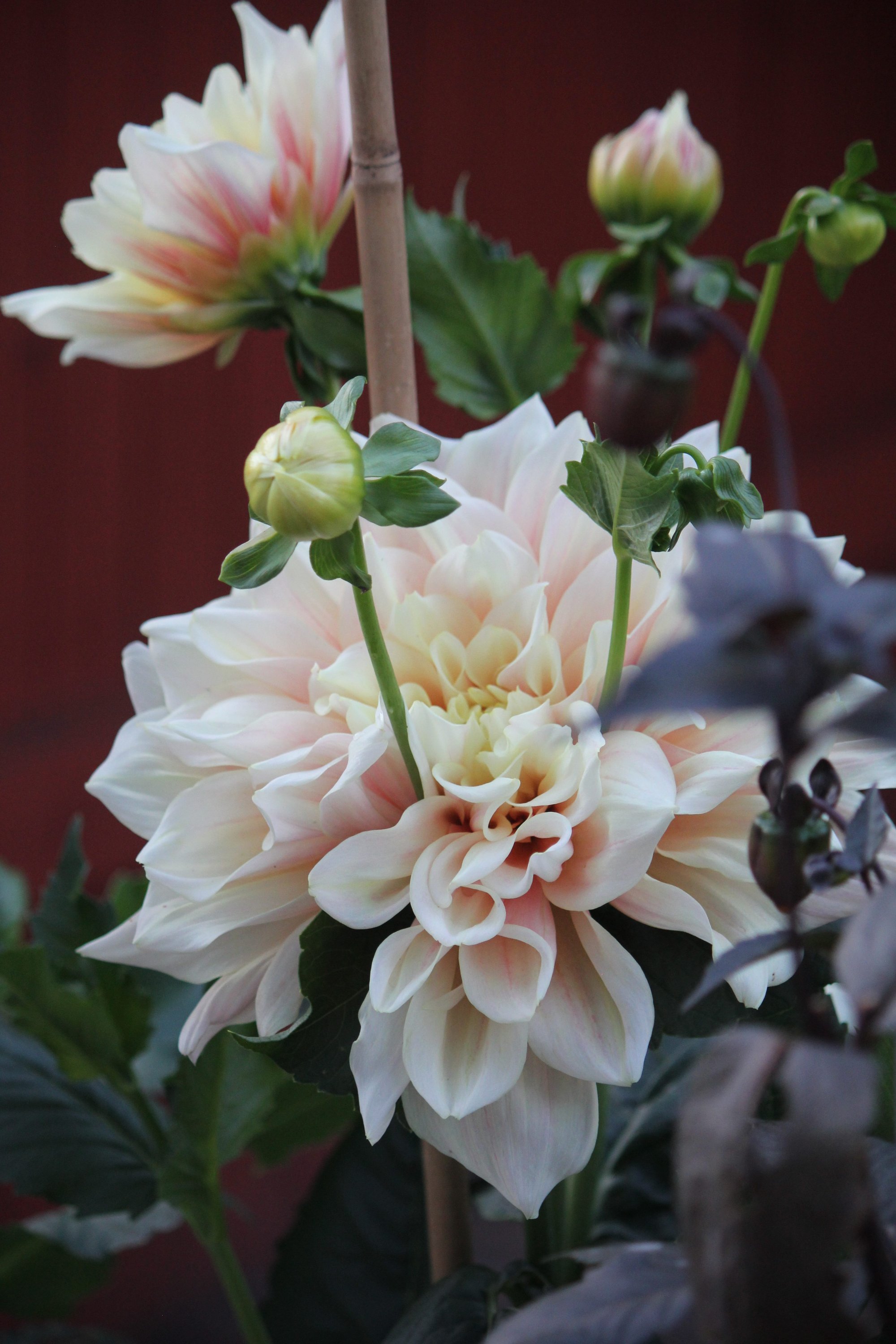 De dahlior som jag är lite extra förtjust i och som blommat rikligt hos mig är White Perfection, Labyrint, Break out, Café au lait, Small world, Sneeuw storm, Happy single kiss, Creme de cassis, Wine eyed Jill samt Wizard of Oz. Pompomdahliorna klarade sig allra bäst mot tvestjärtar och mest effektivt var tvestjärtsfällor där jag rullat ihop wellpapp som jag tömde varje morgon. Efter ett tag försvann tvestjärtarna.