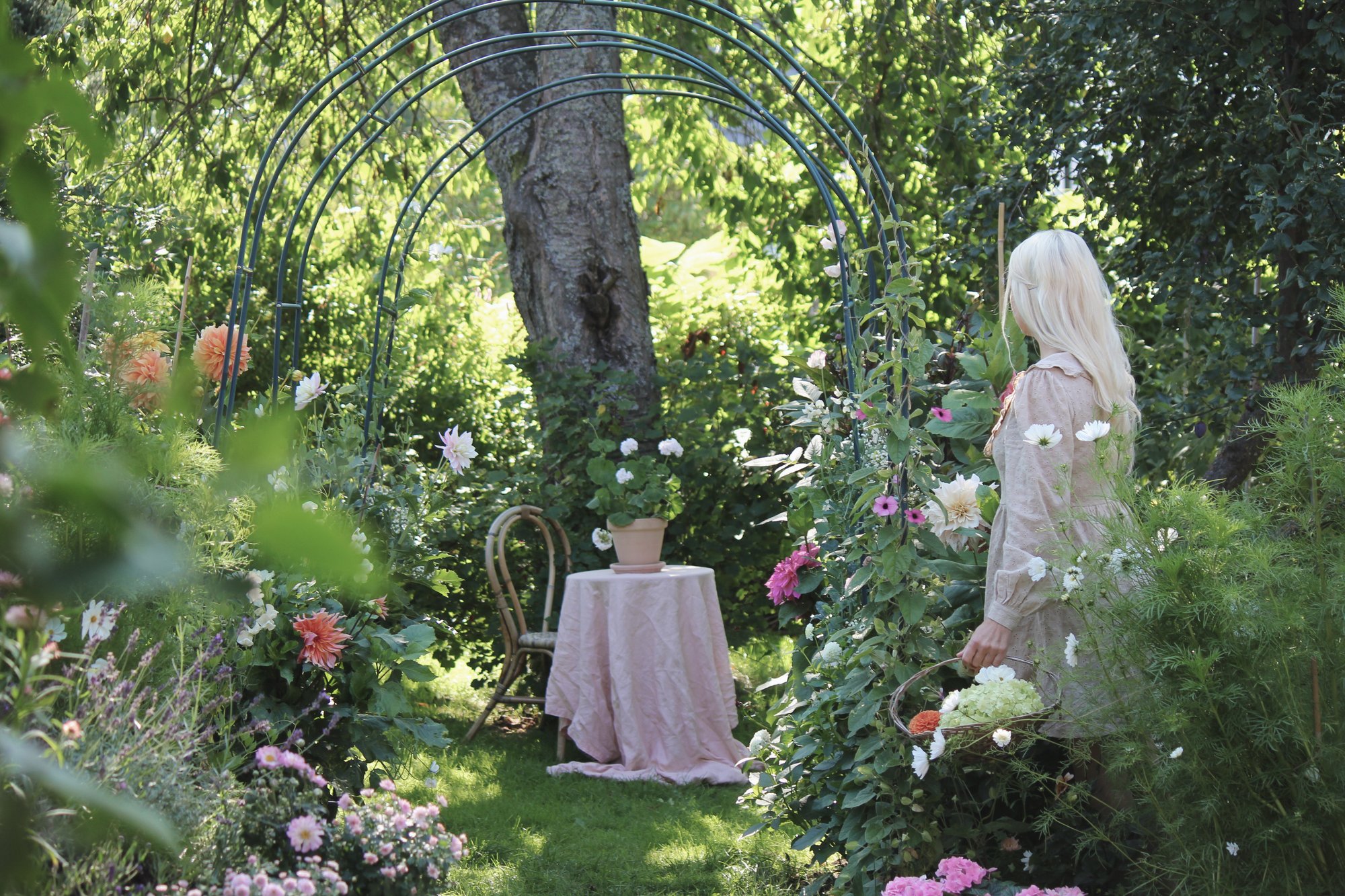 Förutom alla sommarblommor jag sår så driver jag upp ett 100-tal dahlior. Jag har även stora perennrabatter, rosor, lavendel och blommande buskar som även de skapar buketter, kransar och trädgårdsmljön. Dahliorna är så många att de får ett eget inlägg med en egen lista.