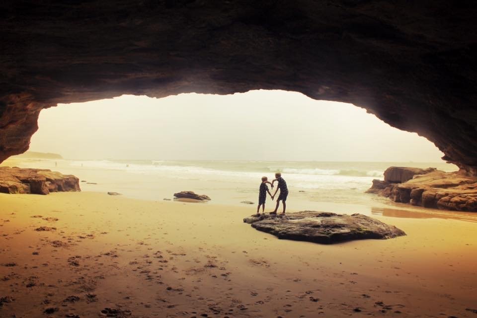 För er som kikade in på min instagram i morse så har ni redan sett det här fotot som jag tog när vi var i Australien senast tillsammans med barnen. Det är Noah och Love på Caves beach i New Castle när vi reste längs kusten söder om Sydney. En jättefin plats där grottor leder dig ut till havet (när vattnet är lågt). Barnen älskade att smyga runt där. Tycker att bilden är talande i dessa pandemitider som hela världen befinner sig i. Ljuset i slutet av den mörka grottan. Hoppet om att allt kommer bli bra till slut. Tro, hopp och kärlek.