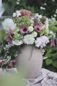 Tycker så mycket om tiden precis innan hösten tar vid på allvar. De svala morgnarna, den klara luften och lugnet som lägger sig över trädgården. Det är nu mina sensommarblommor blommar som allra mest. Dahlior och skira rosenskäror i prunkande rabatter. Zinnia, ringblommor, luktärt, eterneller, solrosor och prydnadsgräs blommar villigt ett tag till. De frösådda blommorna blandas med sensommarens perenner som höstflox, rosenflockel, granna solhattar, kärleksört, hortensia, säsongens sista rosor, rosenvial, blodtopp och höstanemoner. Det finns mycket att välja på när man vill binda sig en maffig trädgårdsbukett att ta in eller ge bort!