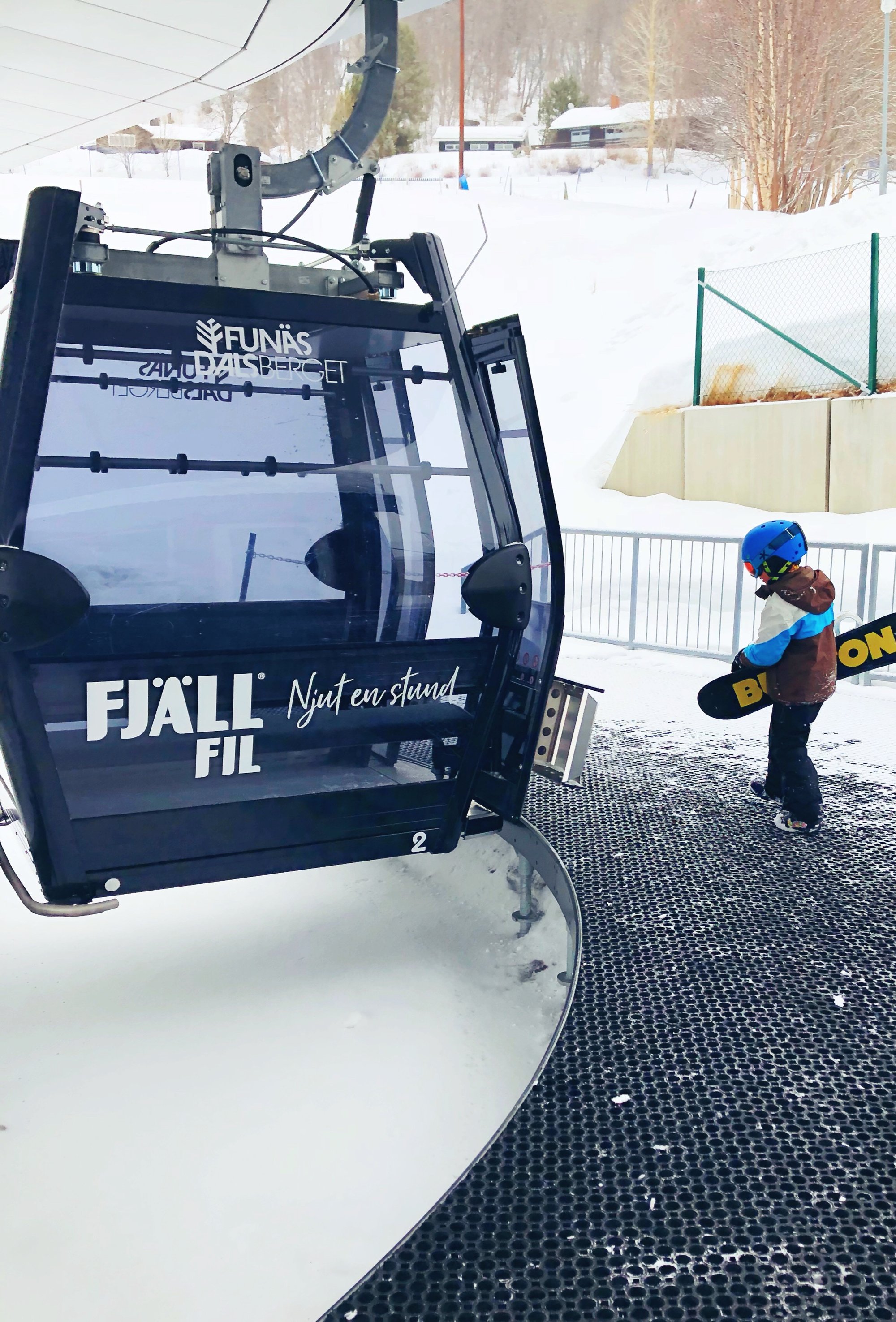 En stor fördel med Ramundberget är att liftkortet även gäller i Funäsdalen. En mindre skidanläggning men med riktigt fina långa backar och en gondol vilken så klart blev barnens favorit! Det blev en snöig tur upp på fjället.