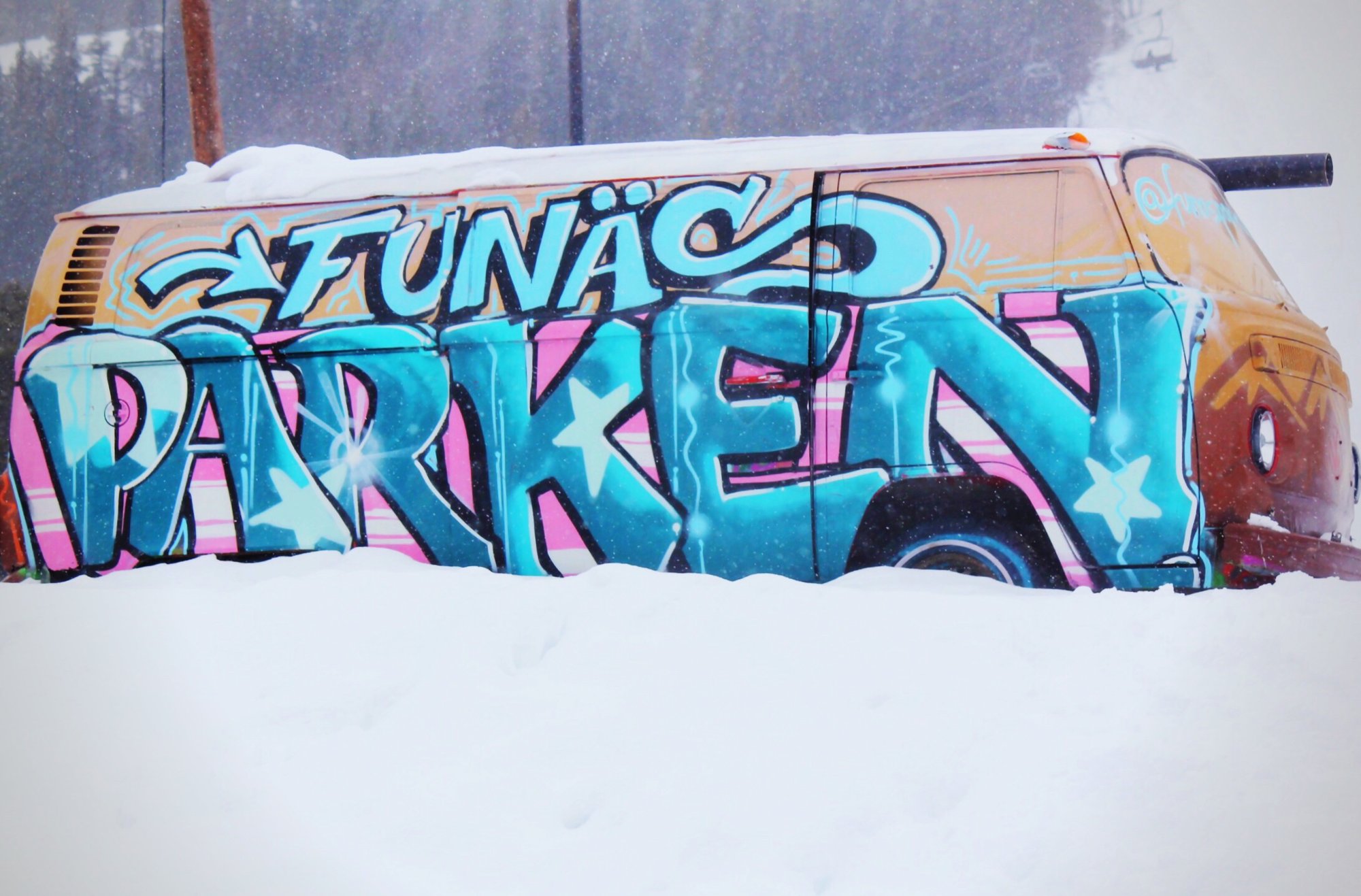 Funäsdalens funpark är uppbyggd med många hopp och rails i olika svårighetsgrader. Barnen älskade det!