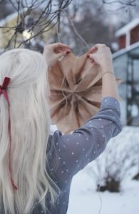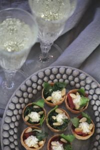 Här pyntar vi träden i trädgården med hemmagjorda pappersstjärnor. Har börjat förbereda lite inför nyårsfirandet under dagen och tänkte ge er ett recept på ett jättegott mingeltillbehör som är perfekt att ha till lite bubblor. Vi brukar ha päroncider som fungerar för både vuxna och barn. Detta recept passar ju även jättebra som förrätt om man har några stycken på tallriken (de är ju ganska små). Har pysslat ihop mitt lilla recept själv efter vad jag tycker är gott helt enkelt. Hoppas att ni kommer tycka om det. Jag har gjort receptet i både en vegetarisk och ickevegetarisk variant. Här kommer båda recepten: