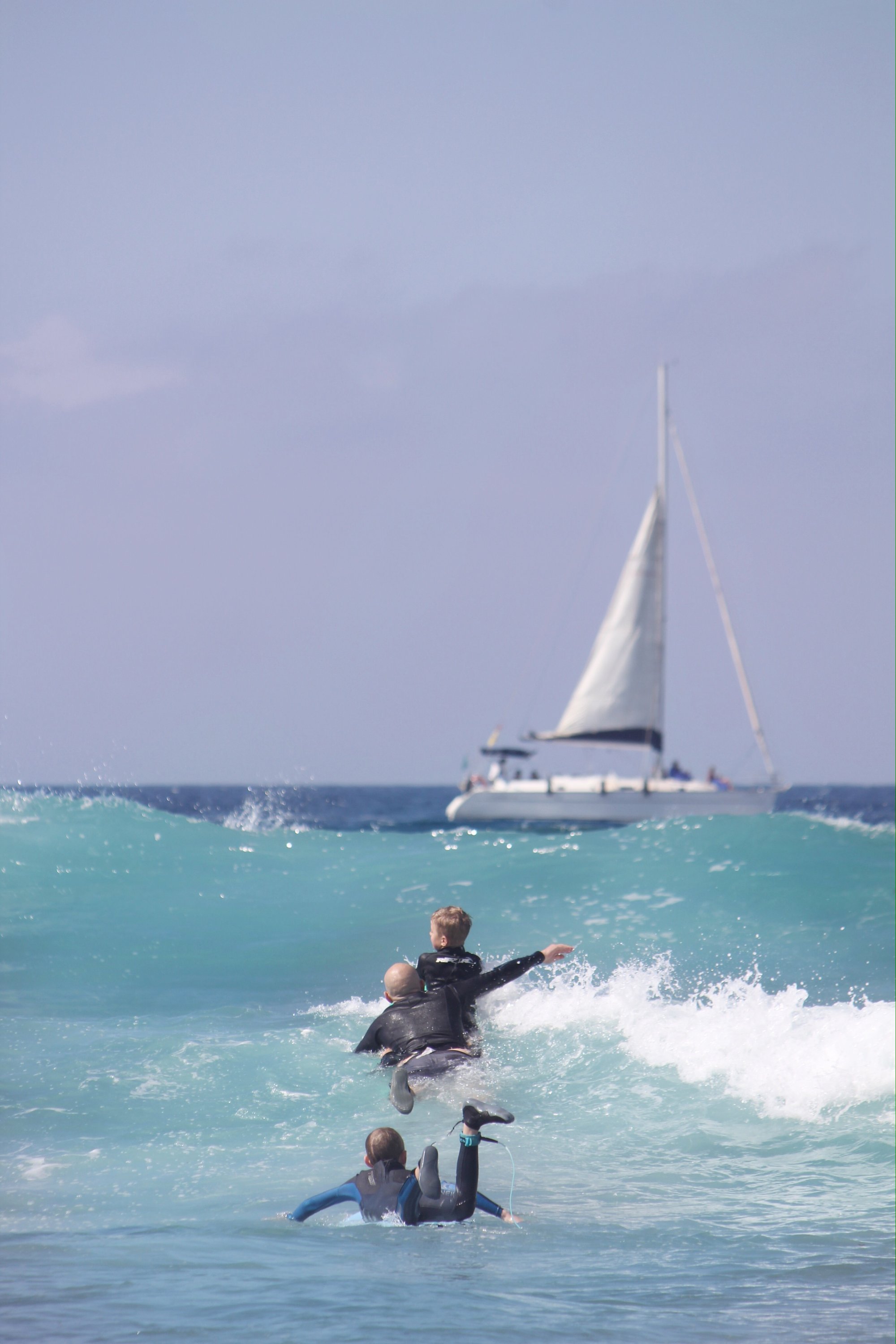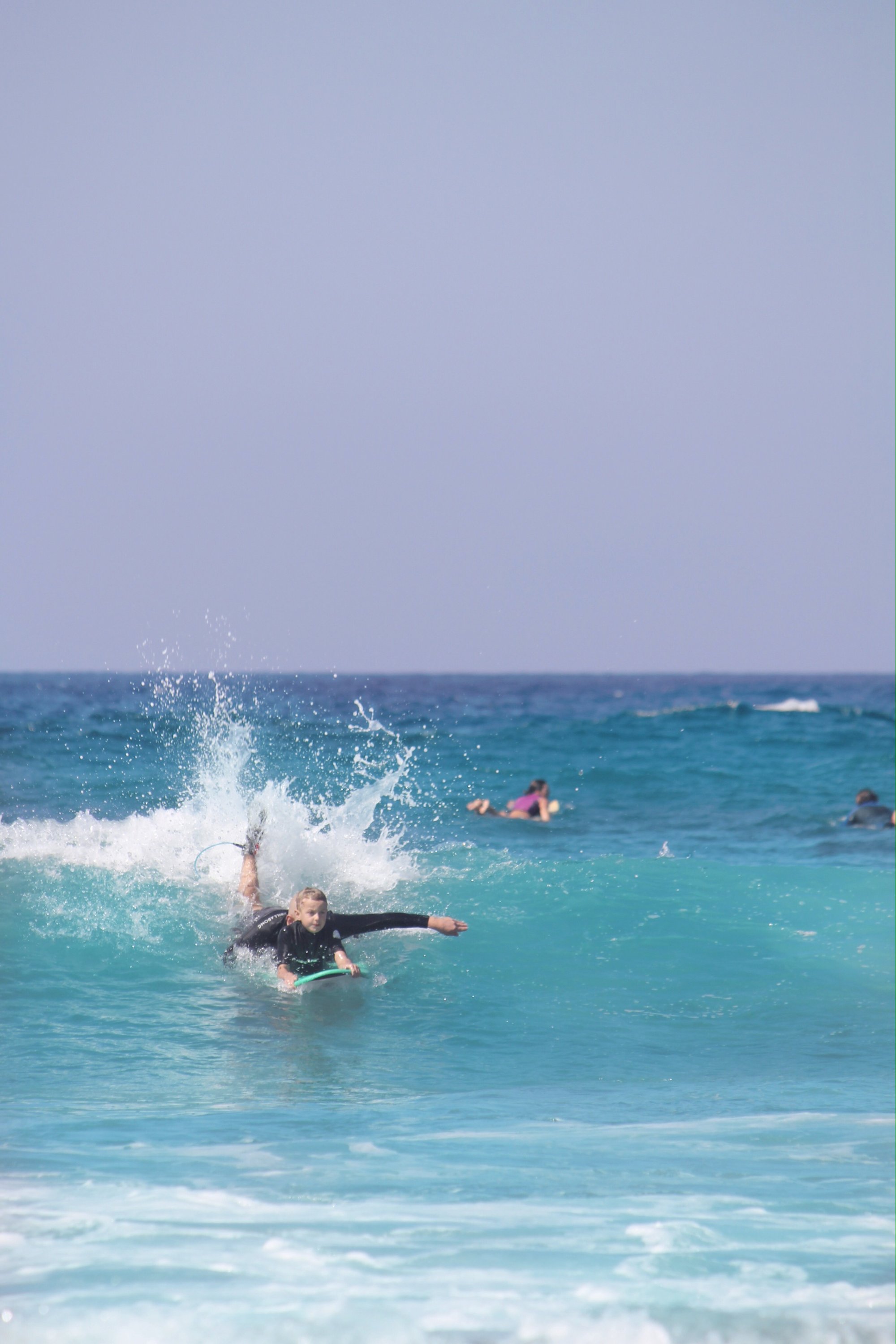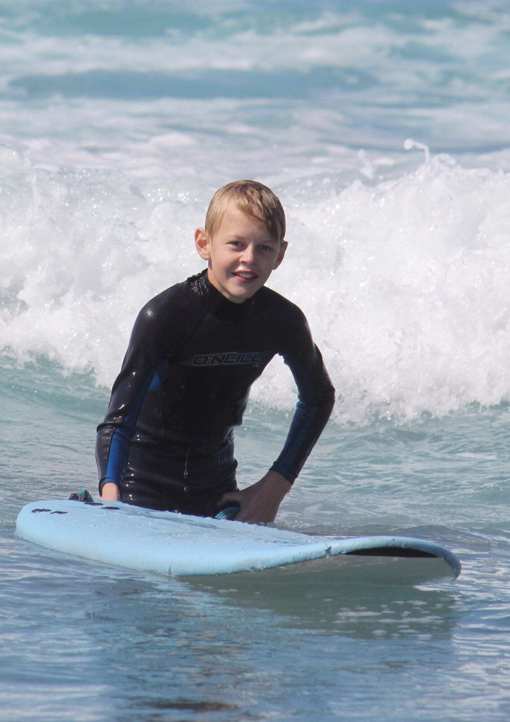 Noah är snabb upp på bräda och tycker det är riktigt kul. Tyvärr blev han bränd av en brännmanet en av dagarna men det gick över till dagen efter.