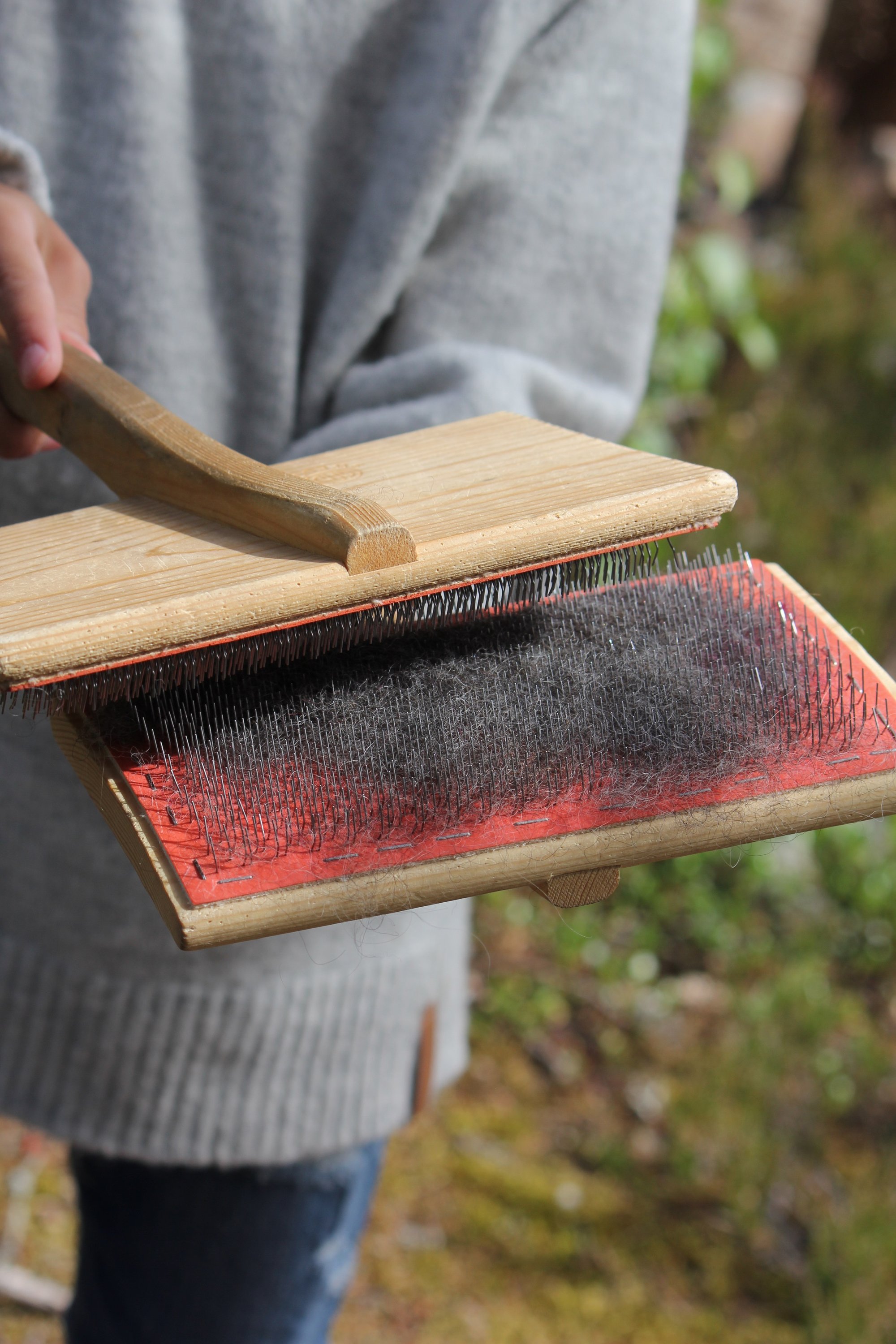 Barnen rullade ullen till en boll tillsammans med såpa. Vi flätade en svans och sydde på öron.