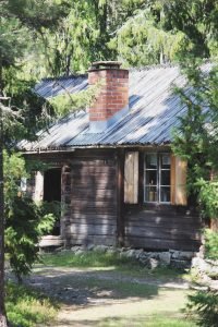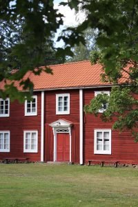 Gammelgården på väg upp till vallen. På vintern håller tomtenissarnas spelmanslag till här inne framför brasan. På sommaren används gården till midsommarfirande.