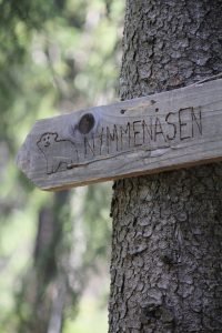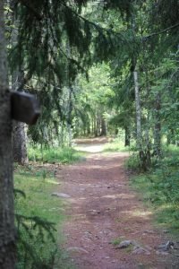 En skogsstig leder upp till vallen. På vägen dit kan man leta efter stentroll.