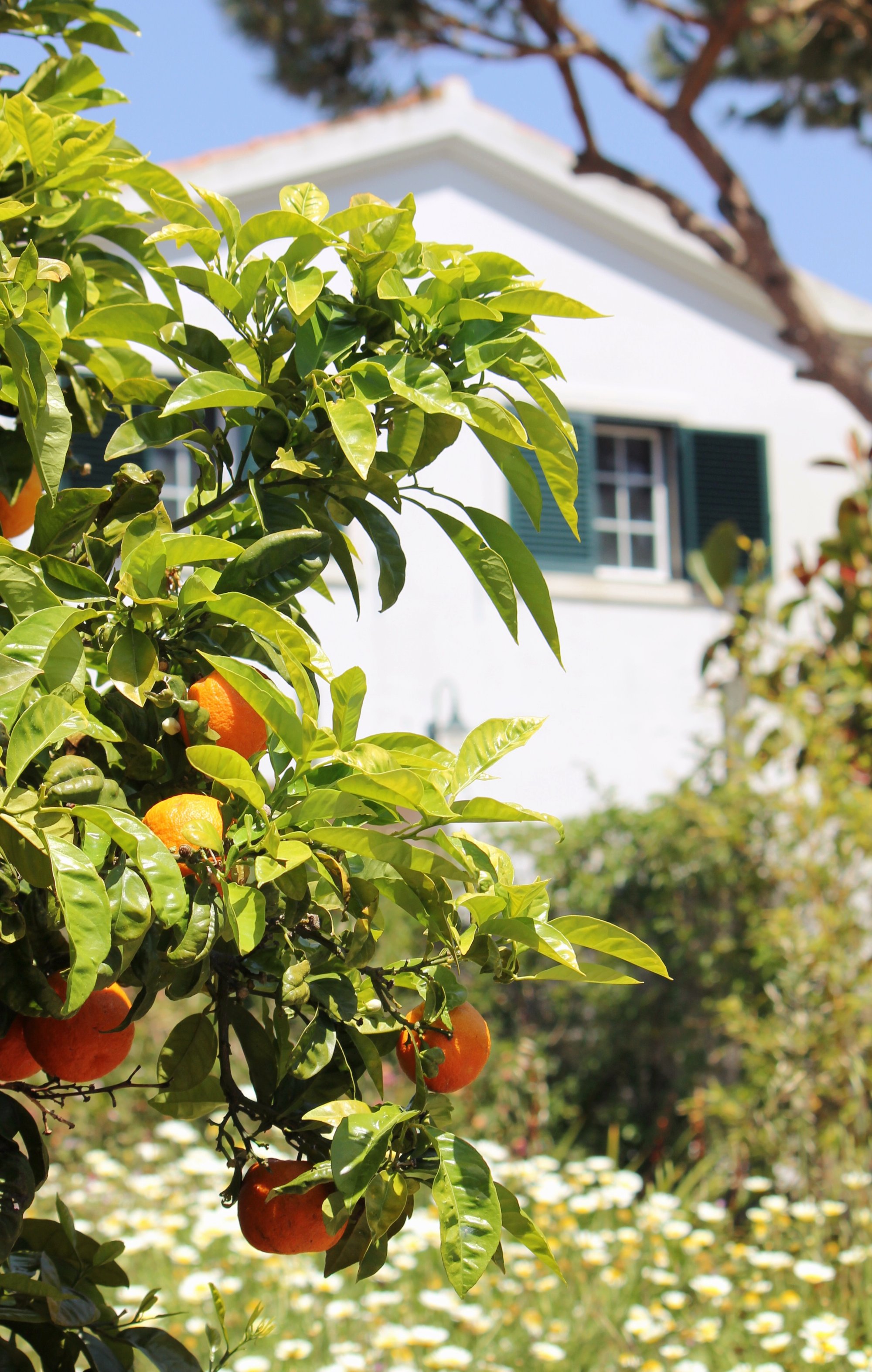 Känns nästan overkligt att vara här nu när man levt i musikalbubblan på teatern den senaste veckan. Jag kunde verkligen inte sova natten efter musikalen. Allt snurrade i huvudet och jag var bara jätteglad och tokpigg. Somnade en stund kl 04:30 tills det var dags att packa ihop och åka till Arlanda. Somnade innan planet lyfte och sov i stort sett hela resan till Lissabon. Vi kom till Sintra sent på kvällen. Ett eget litet hus vi hyrt via Air Bnb. Huset ligger intill en underbar gammal trädgård. Lite vildvuxen sådär med mandarinträd, citronträd, vit kalla och en mängd blommor mellan slingrande murgröna och gamla stenstatyer.