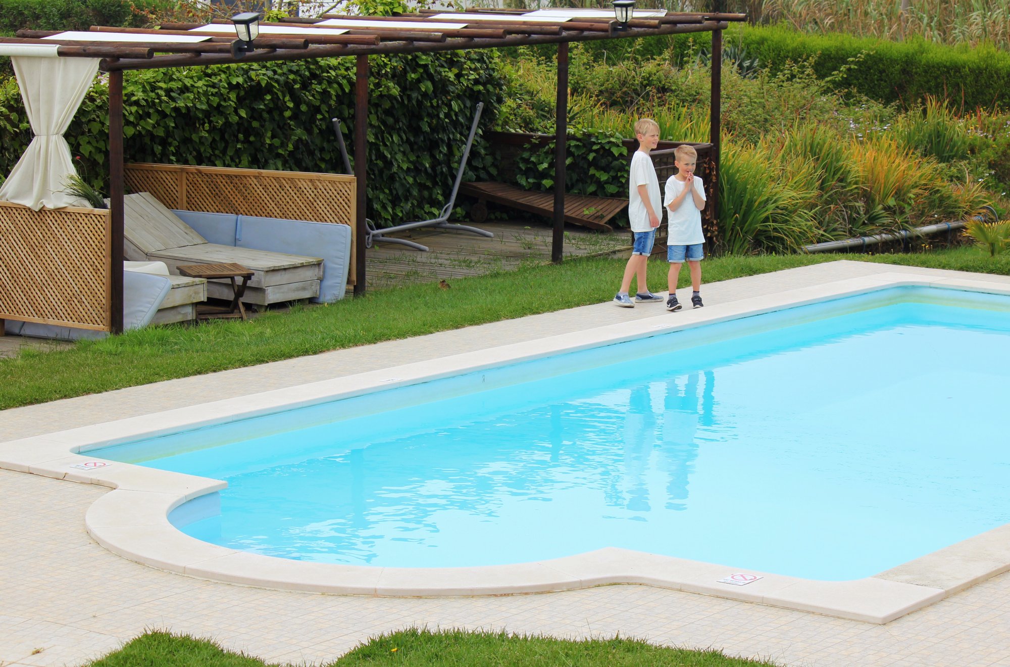 Till barnens förtjusning fanns det en jättefin pool på gården och världens mysigaste lilla katt samt två hundar.
