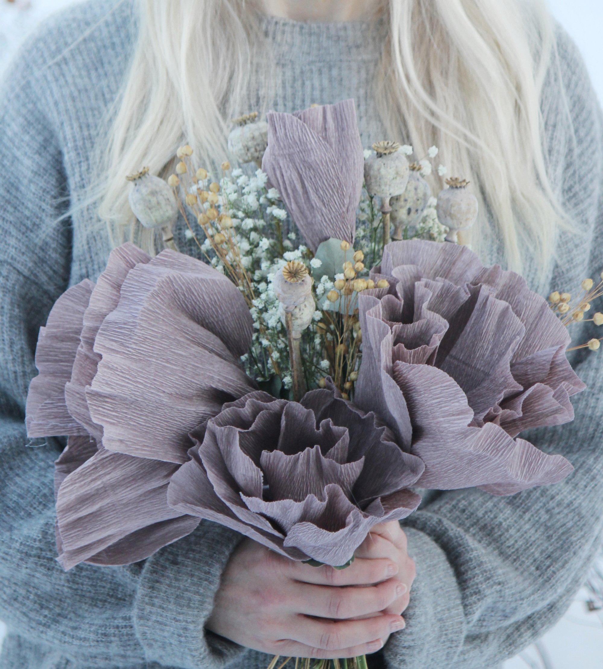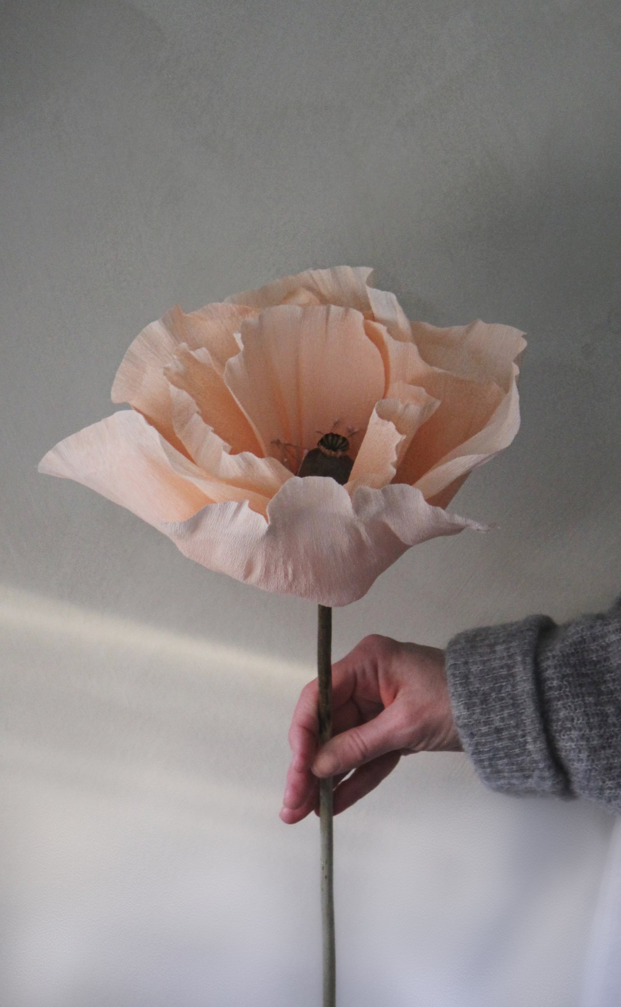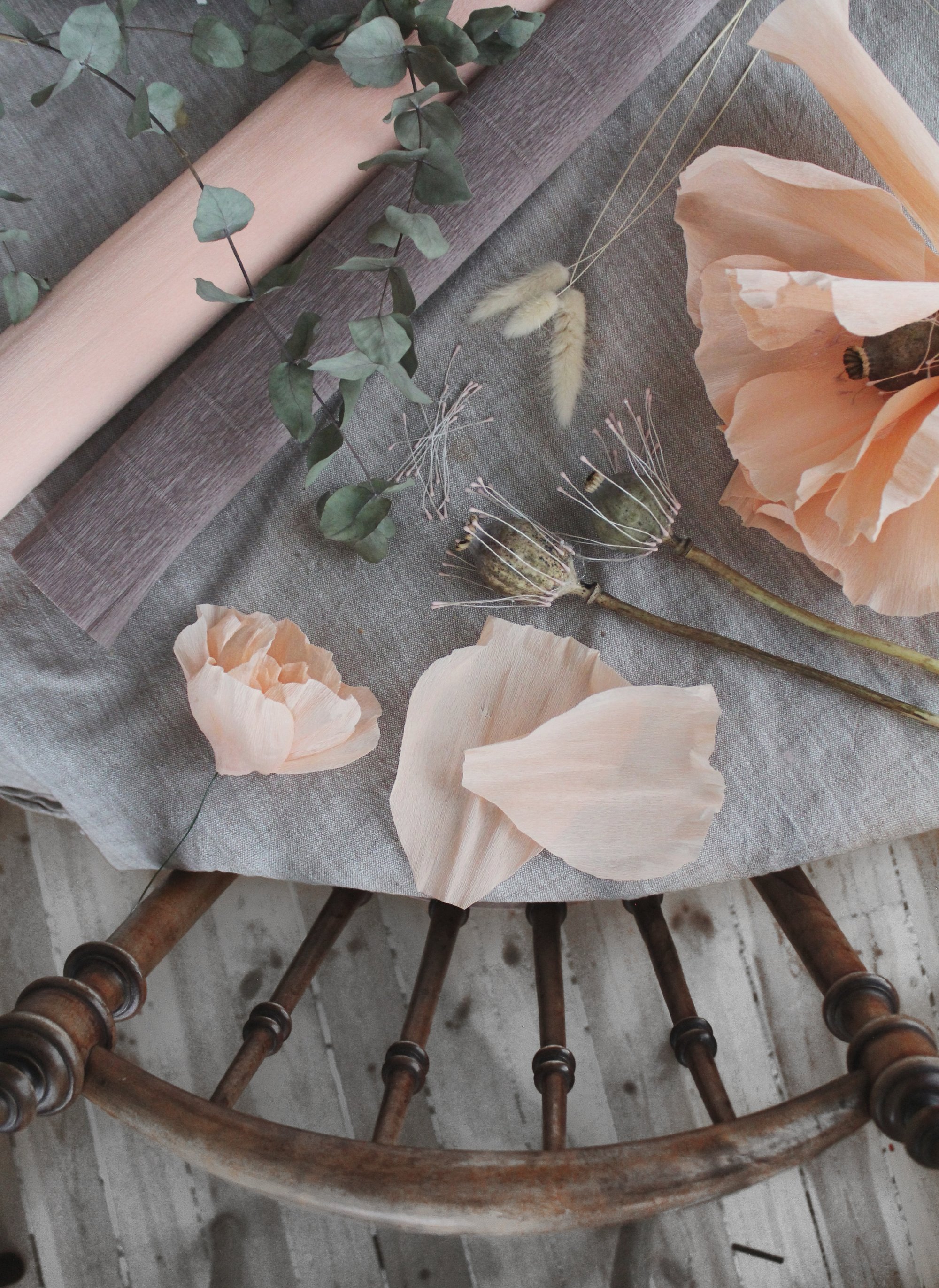 Att skapa pappersblommor har verkligen blivit ett stort intresse för mig. Jag fick stretchigt kräppapper i julklapp av barnen och med en nyinköpt limpistol har jag inte kunnat sluta skapa nya blommor. Vallmoblomman har varit en stor inspirationskälla och jag har skapat vallmo med hjälp av torkade vallmokapslar från sommarens odlingar.