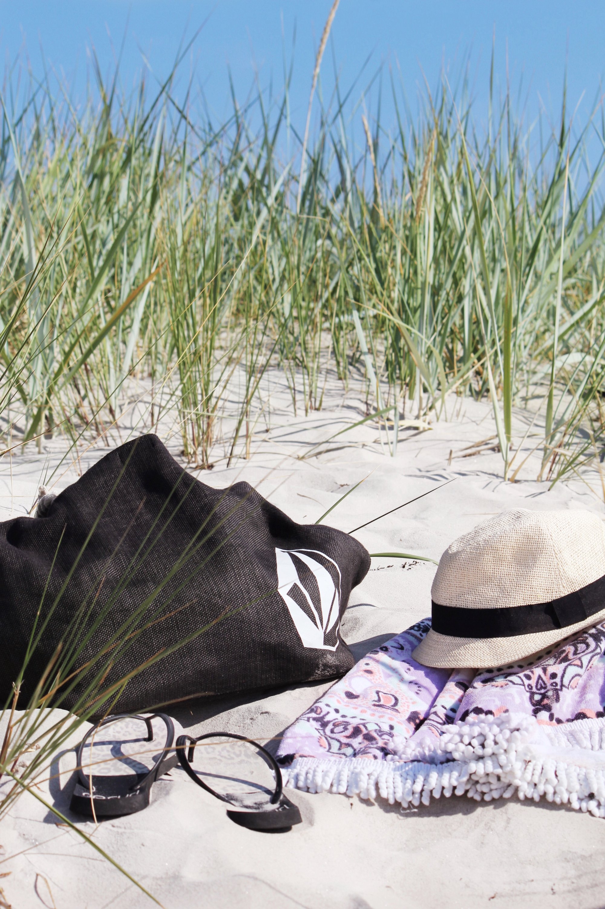 Fick frågan var strandsakerna kommer ifrån. Större strandväska Volcom, Flipflop Ripcurl leoprint, Solhatt H&M och handduken som är rund med fransar kommer från Australien.